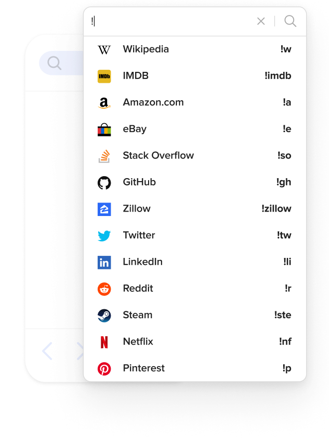 Bangs are shortcuts that quickly take you to search results on other sites. For example, when you know you want to search on another site like Wikipedia or Amazon, our bangs get you there fastest. A search for !w filter bubble will take you directly to Wikipedia.